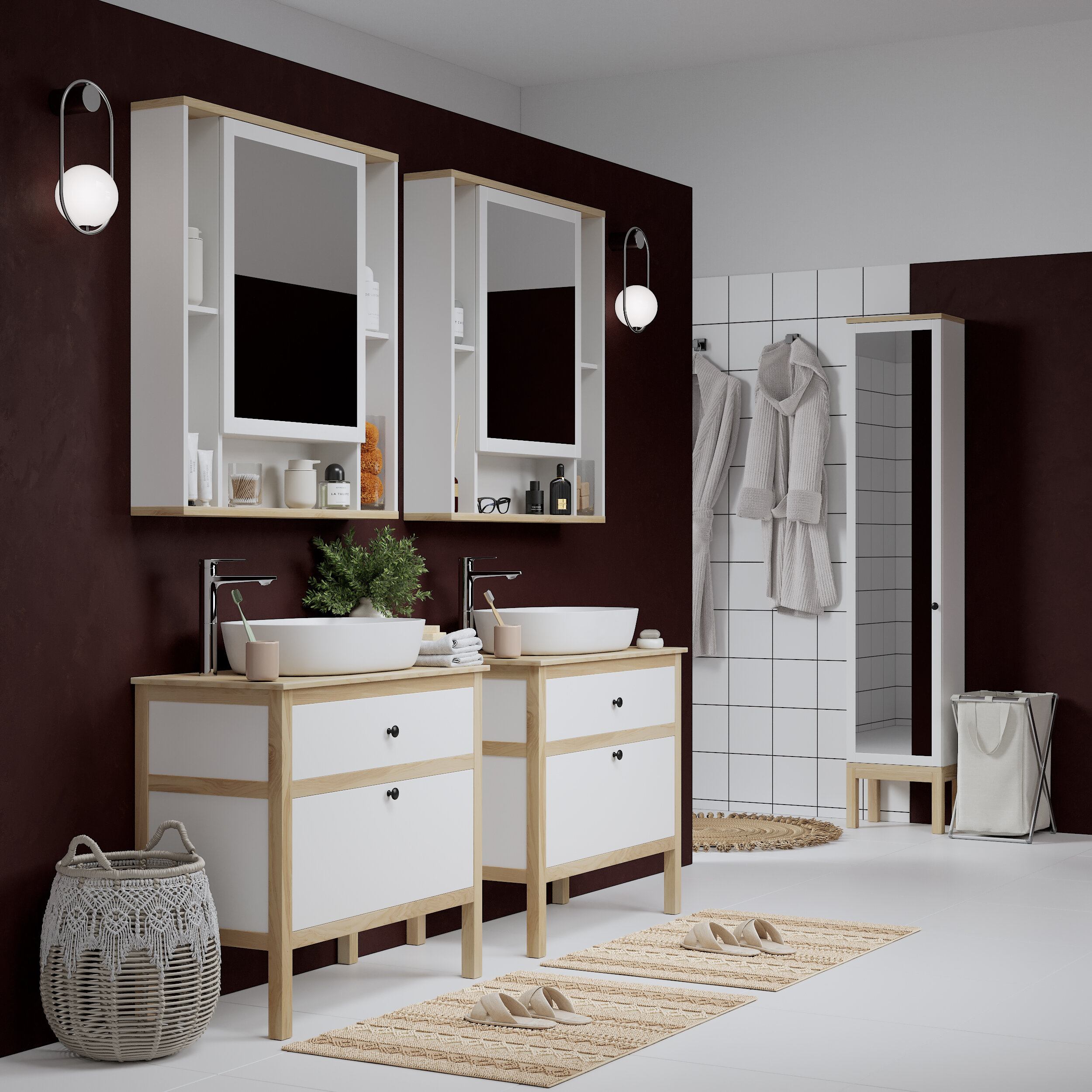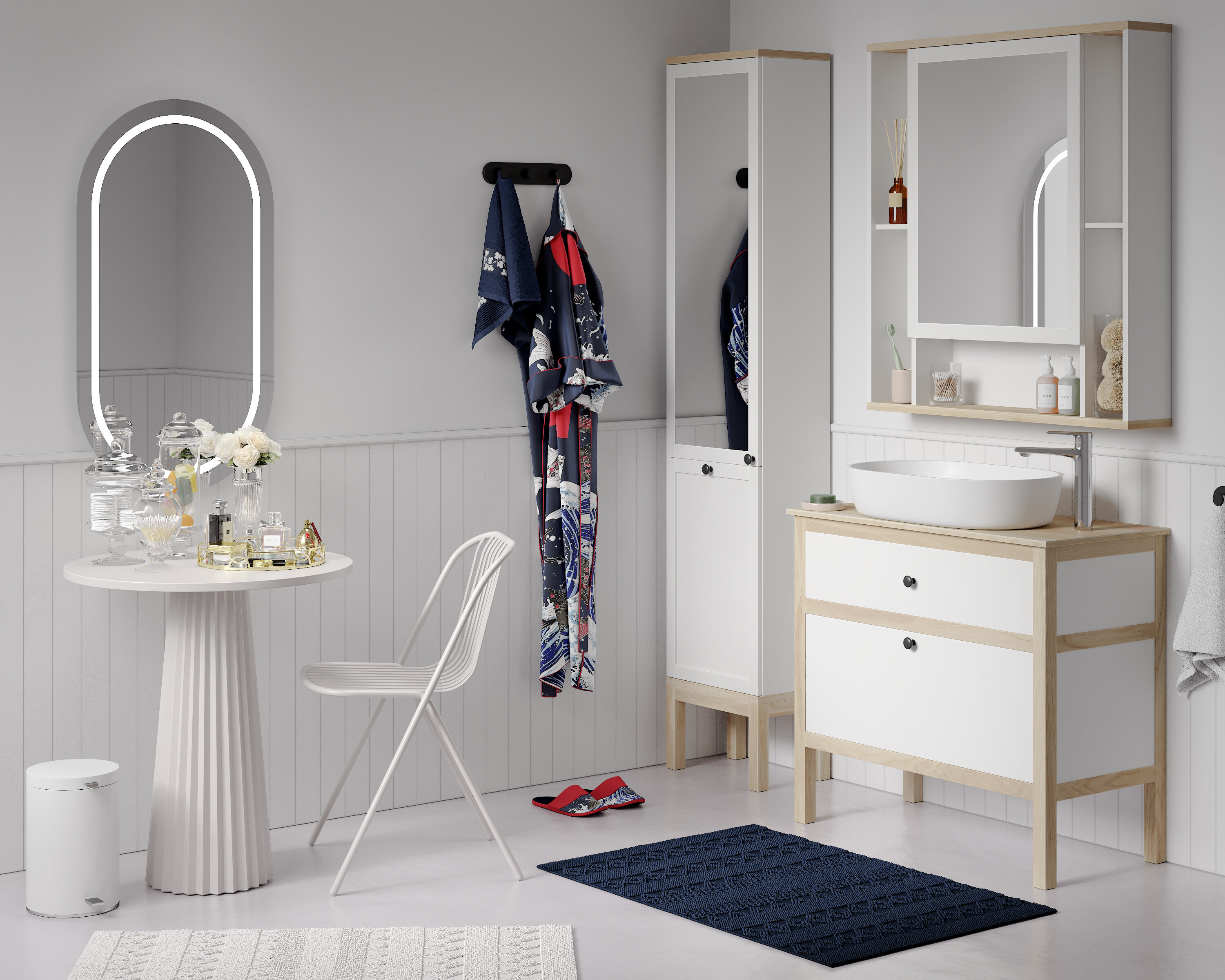 Тумба для ванной комнаты "Скандинавия" - это сочетание натурального ясеня и белой эмали, которое стало очень популярным в интерьерах двадцатых годов.