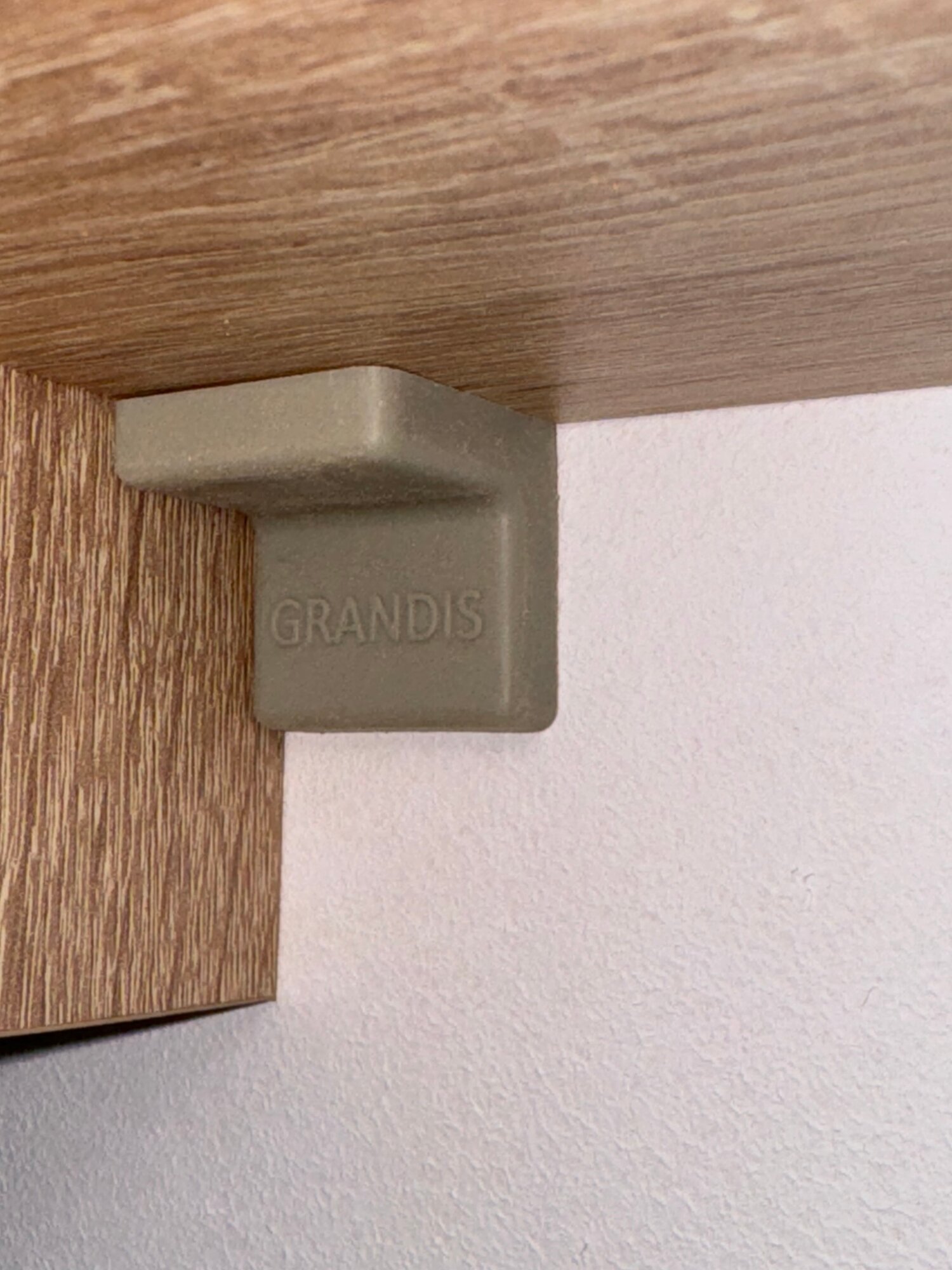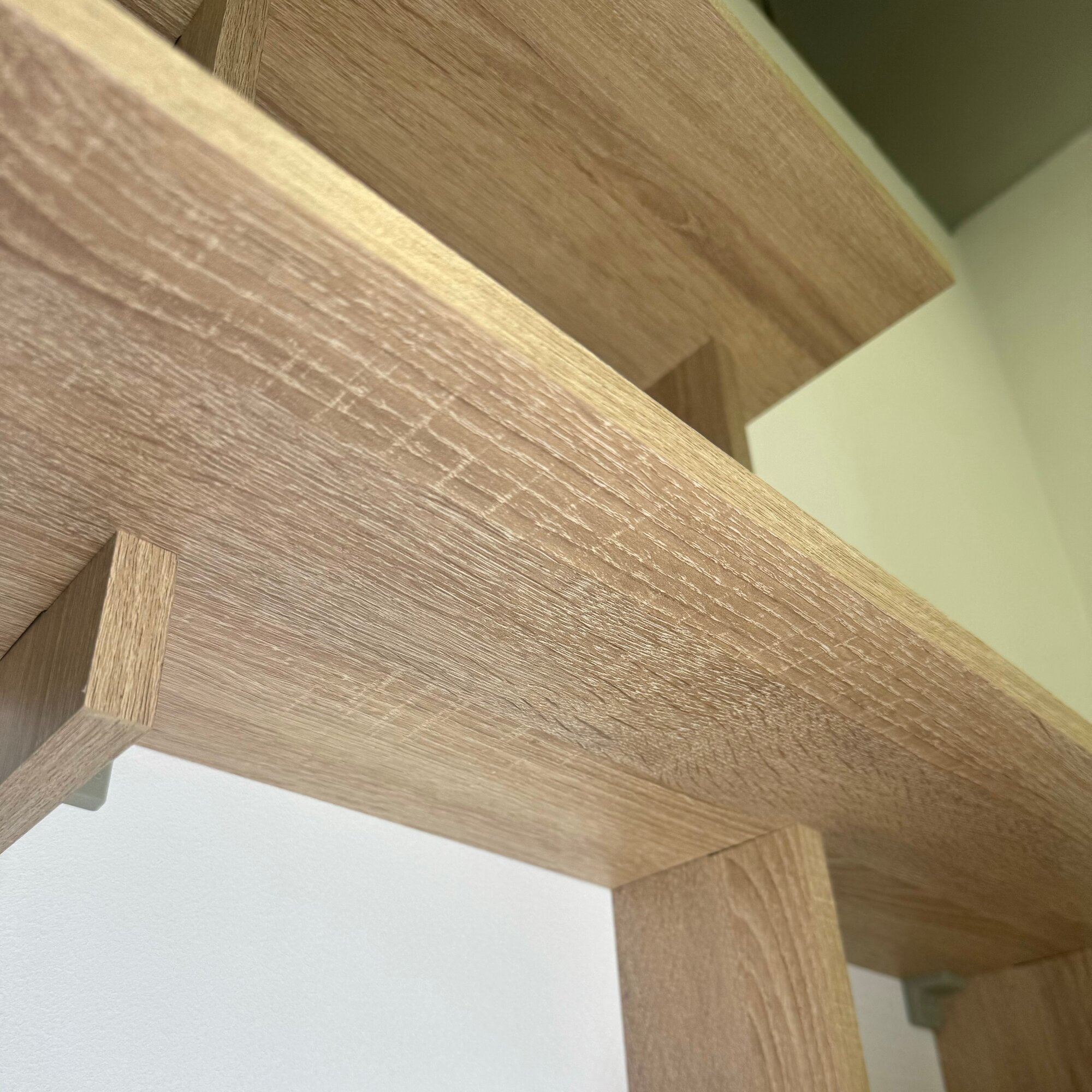 Особенностью полки является скрытое крепление, которое обеспечивает аккуратный вид и не портит общий дизайн помещения. Полка собирается встык без использования крепежа, что упрощает процесс установки и позволяет сэкономить время.