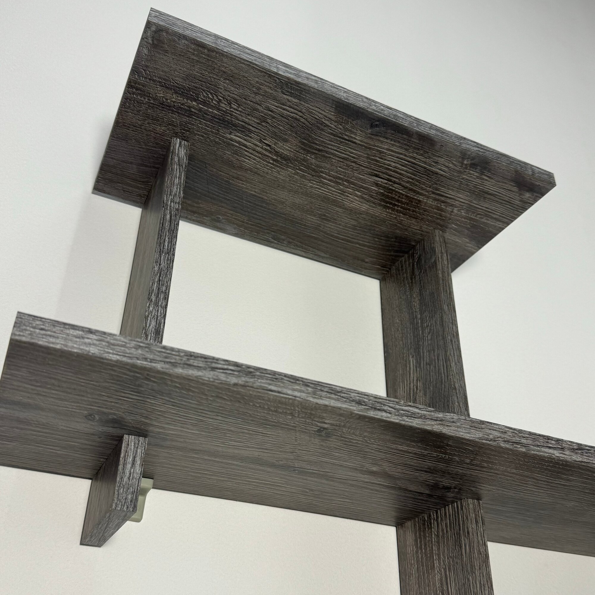 Особенностью полки является скрытое крепление, которое обеспечивает аккуратный вид и не портит общий дизайн помещения. Полка собирается встык без использования крепежа, что упрощает процесс установки и позволяет сэкономить время.